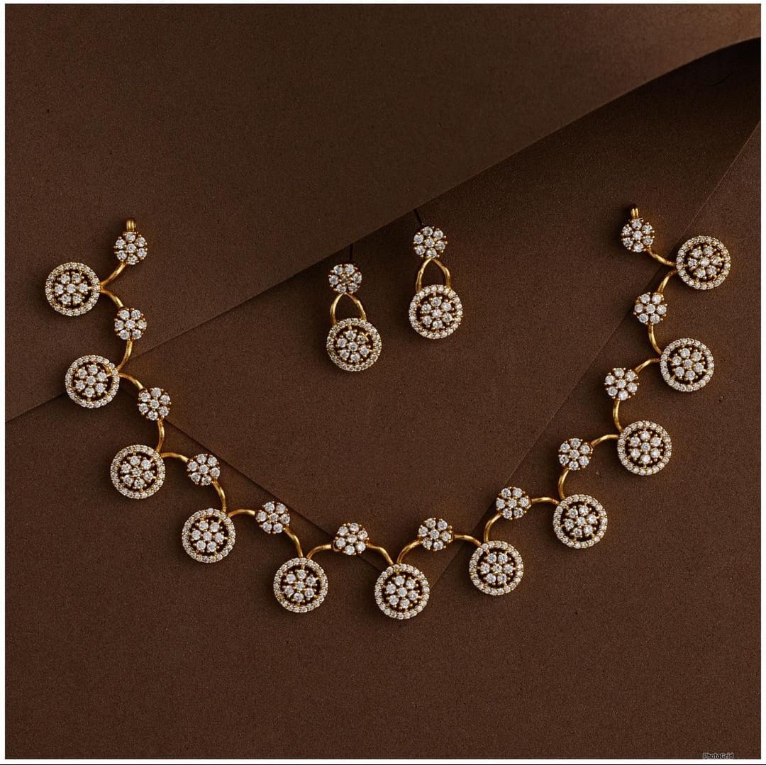 ✅ AAA+ Cubic Zarconia stones – diamond-like brilliance ✅ Metal: Copper base with 22K real gold dust polish ✅ Finish: Anti-tarnish, hypoallergenic & re-polishable ✅ 22 carat Gold-tone ✅ Includes matching earrings ✅ Lightweight & comfortable for long wear ✅ Perfect for weddings, parties & daily glam💎