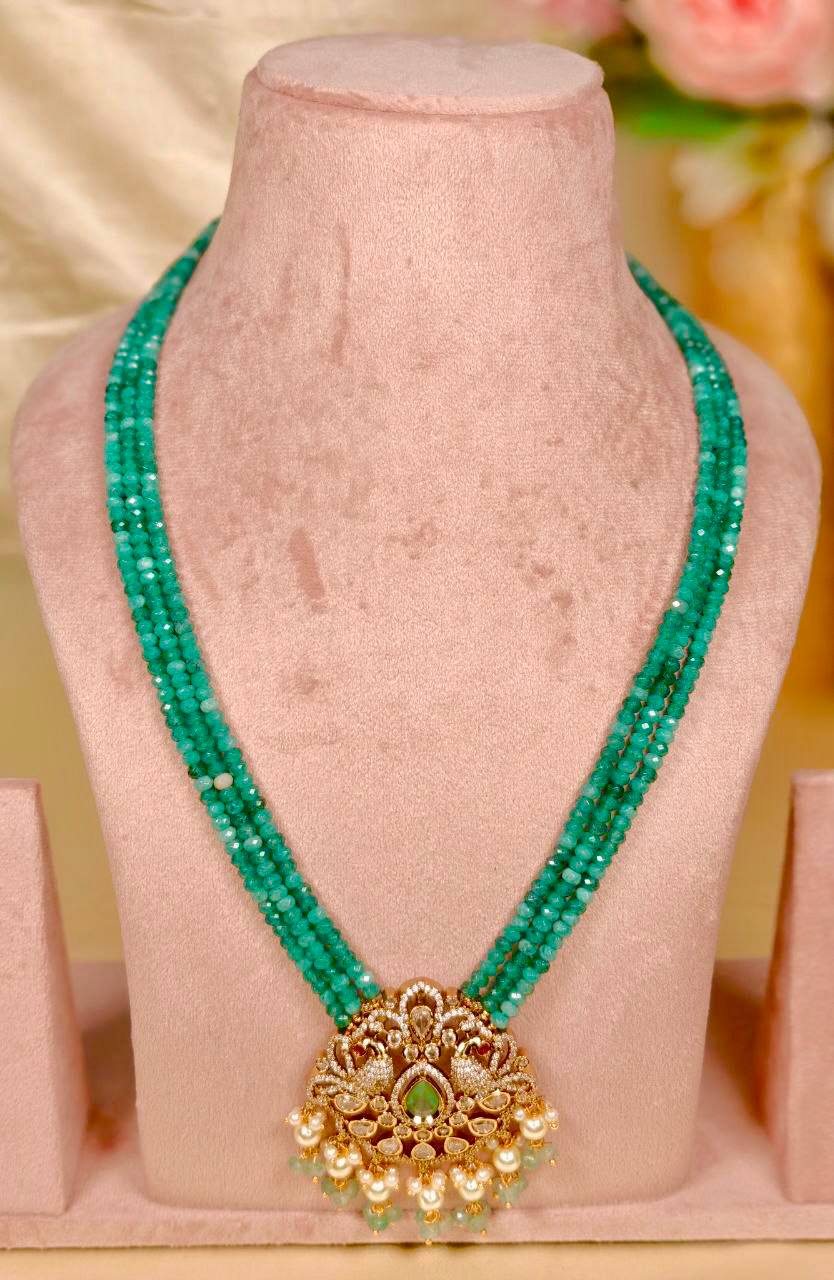 The Green Shubohi Long Haram showcases exquisite bead and pearl detailing, expertly crafted to enhance its traditional charm. Made from a blend of copper and alloy, this necklace ensures durability while maintaining a lightweight feel. Its rich green tones and intricate design make it an ideal accessory for elevating ethnic and festive attire with sophistication.