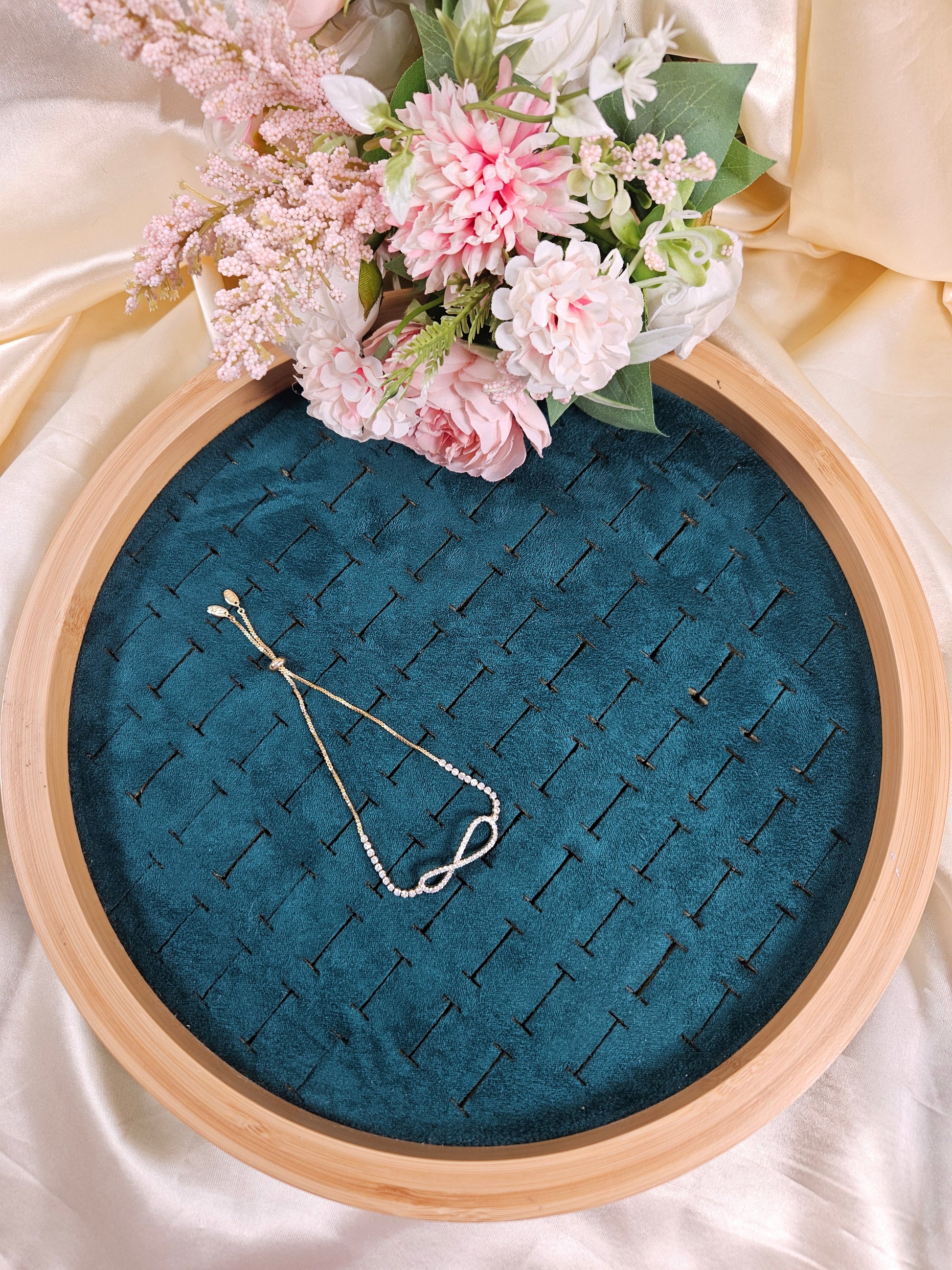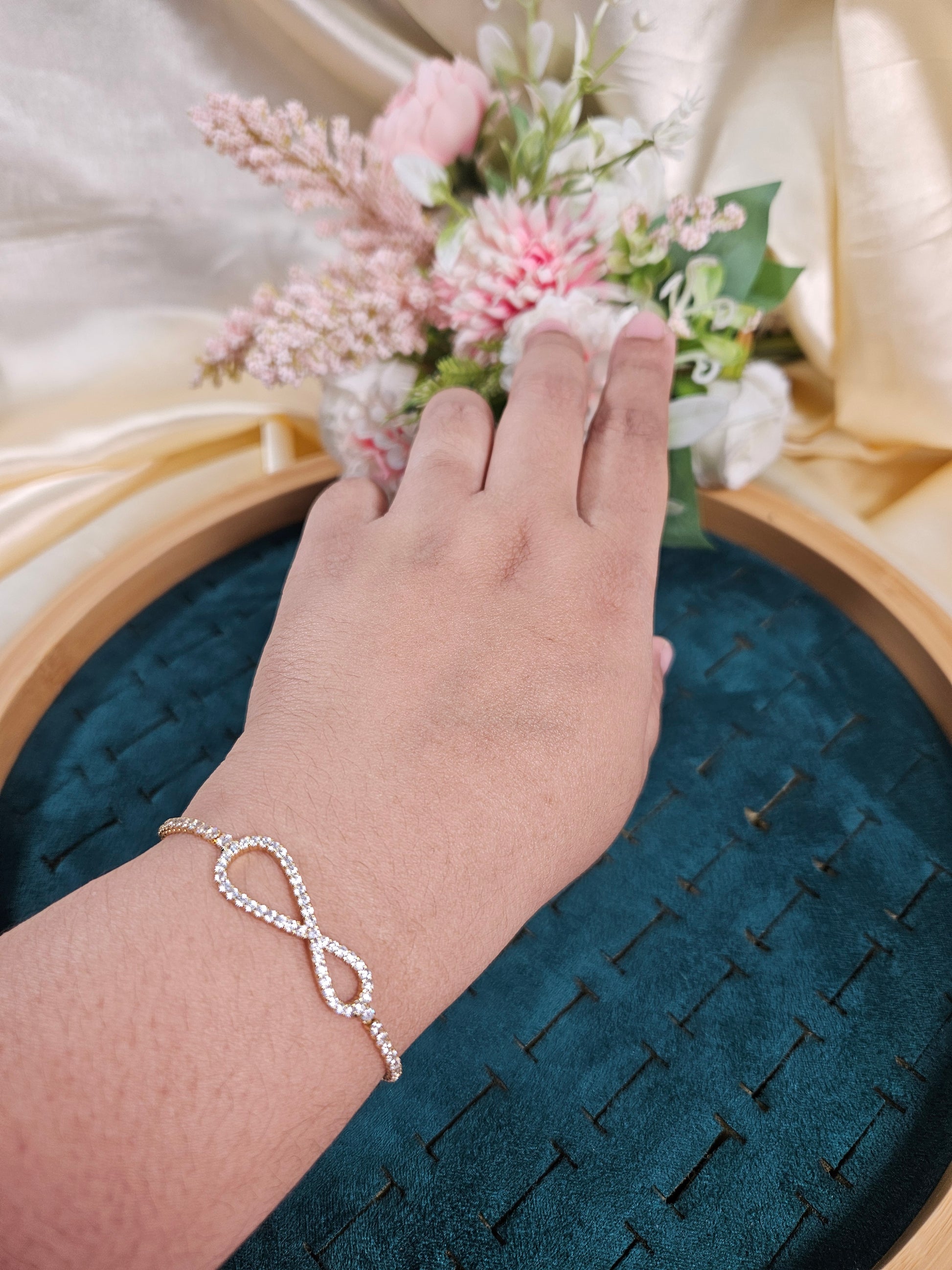 This Infinity Diamond Lookalike Tennis Bracelet offers timeless elegance with its adjustable design, ensuring a perfect fit for every wrist size. Crafted to emulate the brilliance of diamonds, it adds a sophisticated sparkle to any outfit, making it an ideal accessory for both daily wear and special occasions. The adjustable feature enhances comfort and versatility, allowing you to customize the fit effortlessly while maintaining a refined appearance.